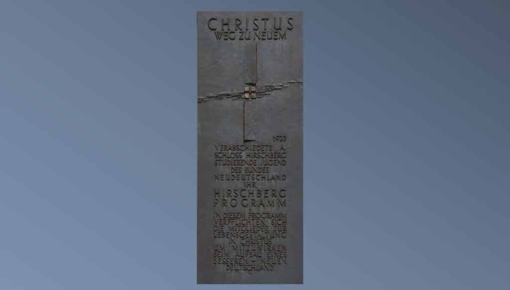Jahrgang 1929. Das reichte Rolf, seine Haltung zu charakterisieren. Die nationalsozialistische Katastrophe, die Wertschätzung der bundesrepublikanischen Demokratie, das aufziehende Vatikanische Konzil. Fest verwurzelt in der Hoffnung auf die Neue Lebensgestaltung in Christus (Fotomontage mit der Gedenkplatte auf Schloss Hirschberg) und die Erneuerung der Kirche.