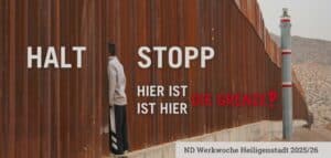 Komm zum Jahreswechsel ins Marcel-Callo-Haus nach Heiligenstadt. Der ND veranstaltet dort eine Werkwoche zum brisanten Thema Grenze. Wir hören Vorträge renommierter Referenten, diskutieren kontrovers aber stets respektvoll und verschönern uns die Zeit mit Chor, Band, deren Choroperation, Arbeitskreisen (Neudeutsch: Workshops), Jugendparty, Morgenlob und Taizégebet – alles kann, nichts muss.